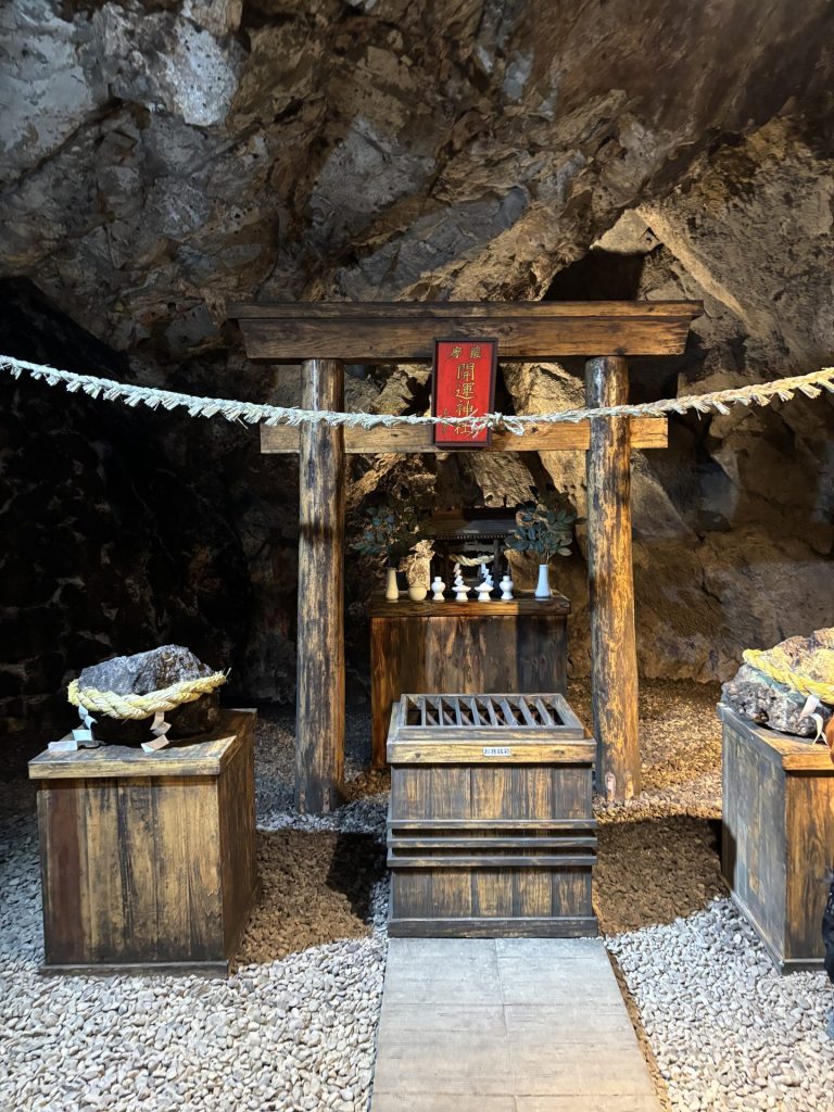 迷路のような坑洞内を進むと、パワースポット薩摩開運神社があります。