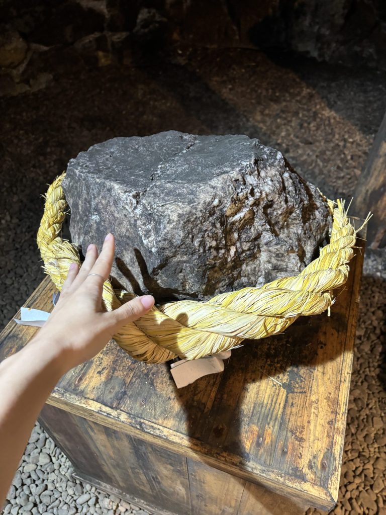 神社両隣りには、触れる金鉱石。しっかりと撫でて金運もおすそ分けいただきました!