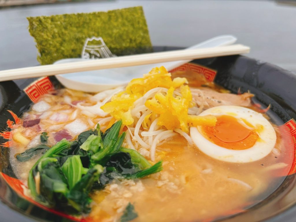 伊佐市の特産品である金山ねぎをふんだんに使用したこのラーメンは、濃厚な信州味噌のスープに、シャキシャキで甘みのある金山ねぎがピリ辛のタレで和えられトッピングされています。