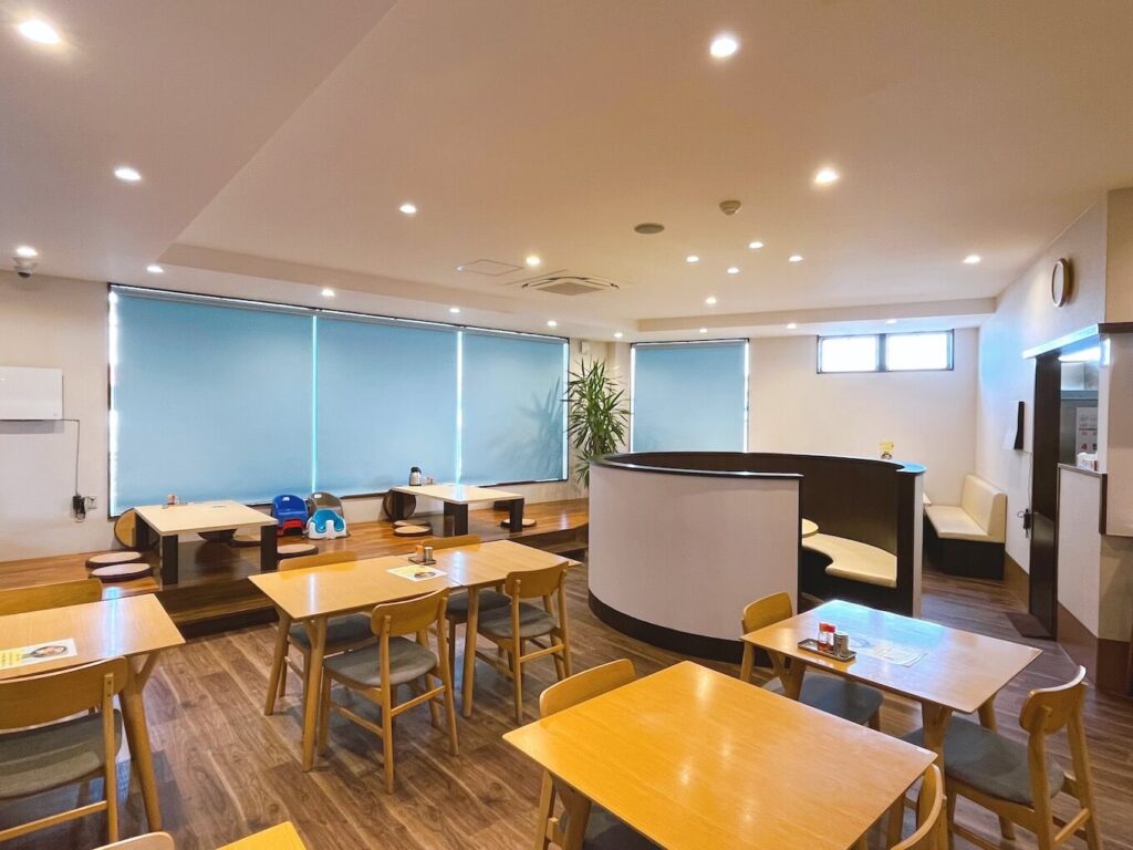 清潔感のある店内は、女性や家族連れでも利用しやすく「一人でも大人数でも楽しめる場所にしたい」という店主の想いが込められています。オムツ交換台や子供用イスも用意されていますよ!