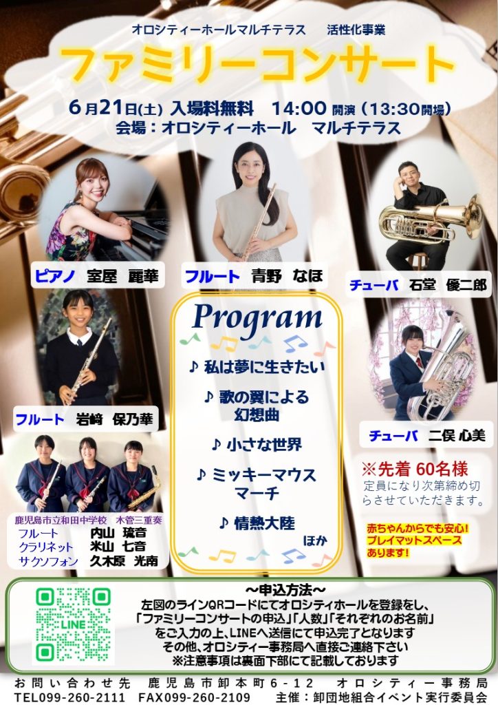 6/21(土)に、鹿児島にゆかりのある音楽家たちによるファミリーコンサートが開催されます。