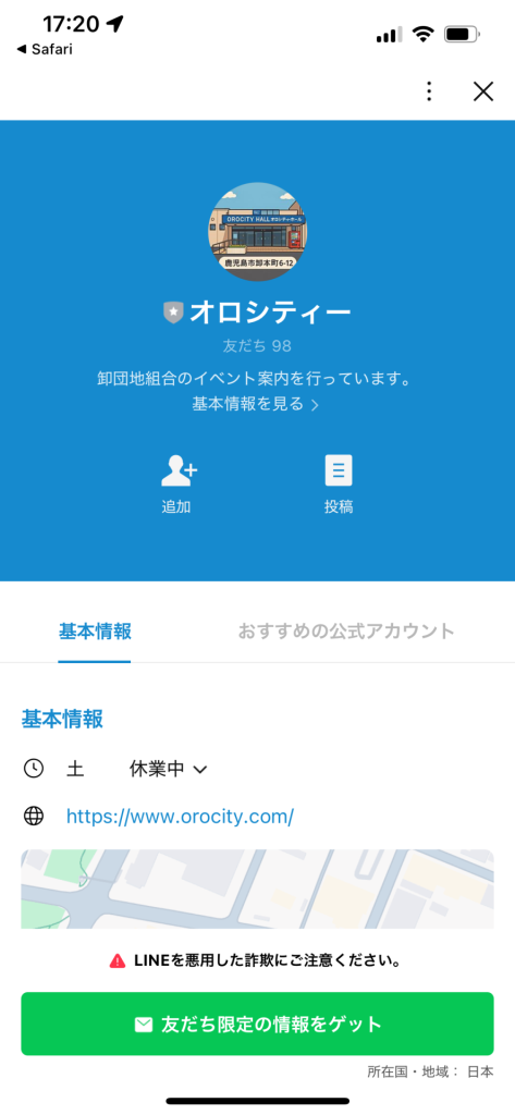 オロシティーのLINEアカウントは、LINE上で「オロシティー」で検索するか上のチラシのQRコードを読んでお友だち追加をしましょう。このページをスマホで読んでいる方は以下のリンクでLINEが起動してお友だち追加画面に遷移すると思います。