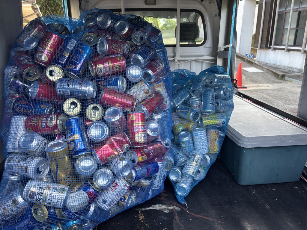 燃えないゴミは基本的に自分でリサイクル小屋へ運ぶのですが、アルミ缶だけは子どもたちが月に1回回収してくれます。