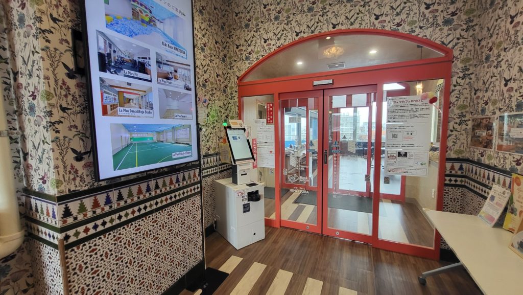 自動ドアの前にある券売機で、どのサービスを利用したいかを選びます。