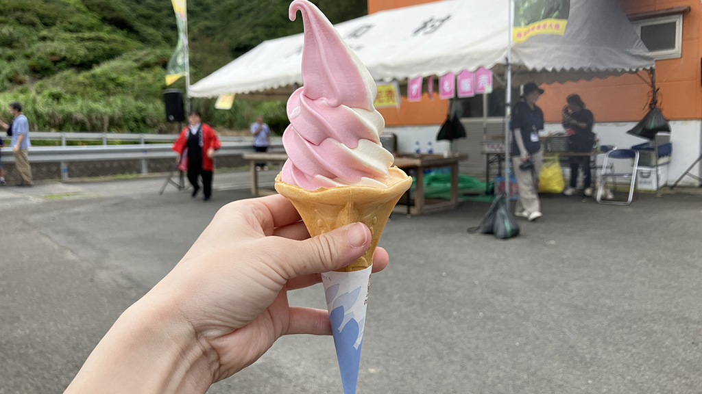 残念ながらすももは買えませんでしたが、大和まほろば館で通常販売しているすももソフトクリームを頂きました。