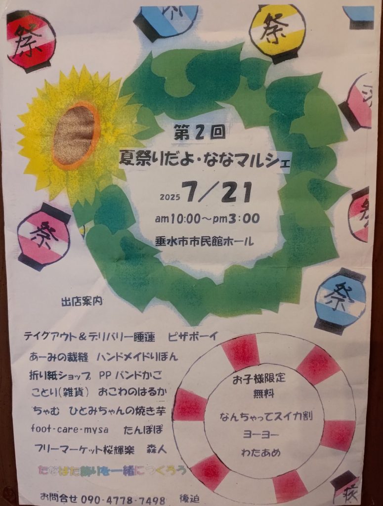 様々なハンドメイドにフード、お子様限定でヨーヨーやわたあめもございますのでぜひ足を運んでみてはいかがでしょうか。