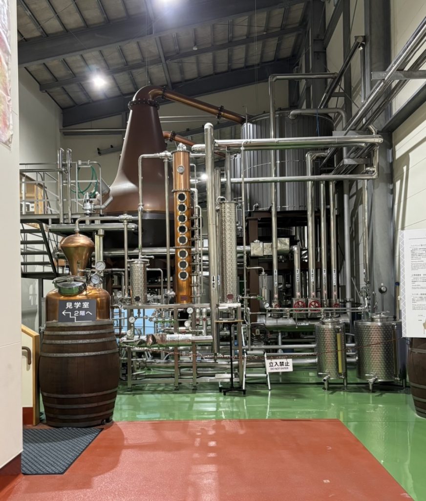 2階へ上がると、ガラス越しに糖化、発酵、蒸留の工程を見学することができます。
