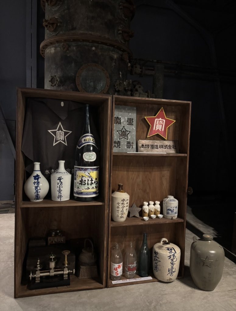 旧蒸留塔内には本坊家、本坊酒造の歴史を紹介するパネルや昭和初期の焼酎壺や看板などが展示されており、百有余年のヒストリーをぎゅぎゅっと見ることが出来ますよ。