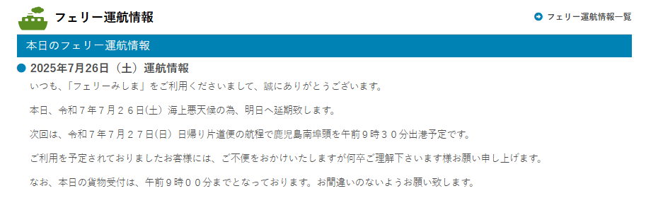 鹿児島市に住んでいたときには知らなかったのですが、船って案外すぐ欠航するんです。