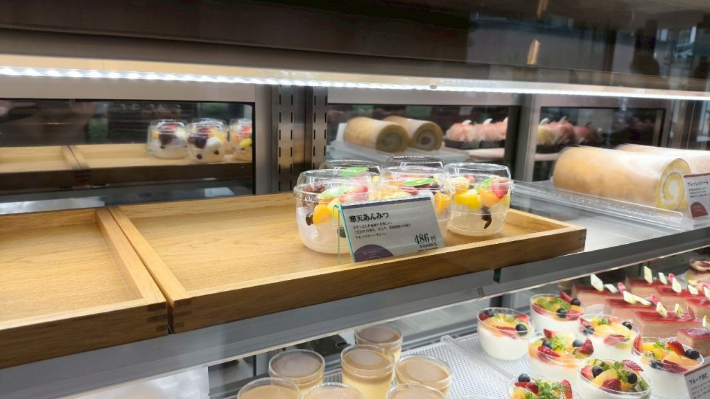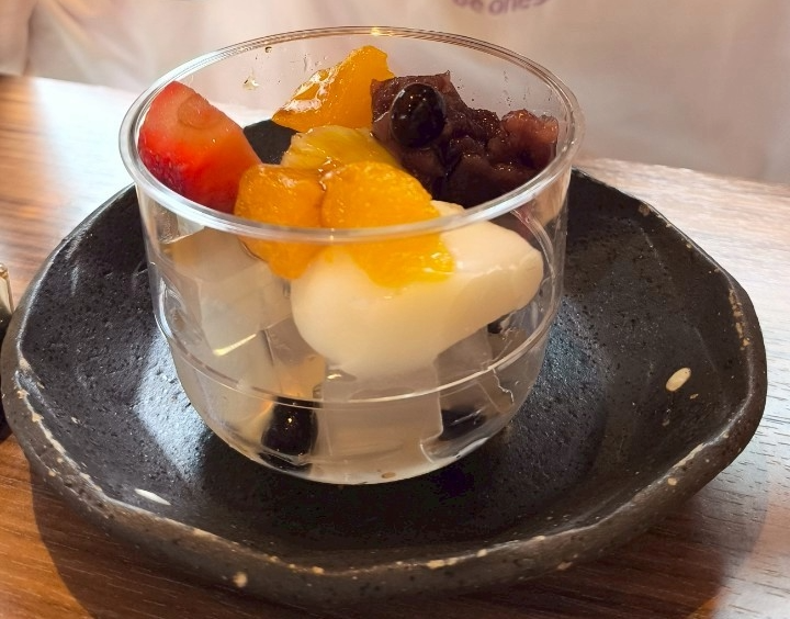 寒天・あんこ・フルーツがバランスよく盛られていて、見た目も華やか。