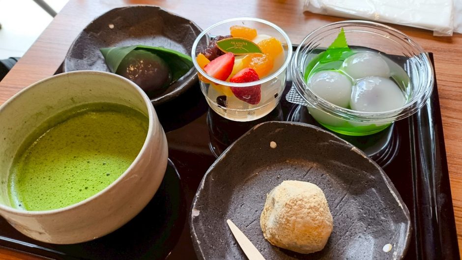 私はお抹茶を注文して、本店の和菓子と一緒にゆっくり味わいました。