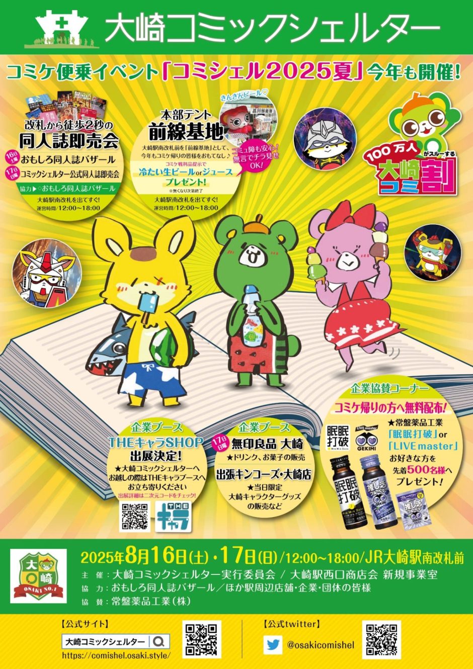 2025年8月16・17日(土日)、東京ビックサイトで開催されるコミックマーケット(通称:コミケ、コミケット)に合わせて東京都山手線大崎駅近くでは『大崎コミックシェルター』が開催されています。