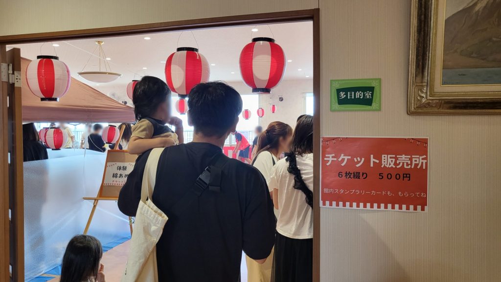 体験コーナーはチケット制になっており、チケットは多目的室の入口で購入します。