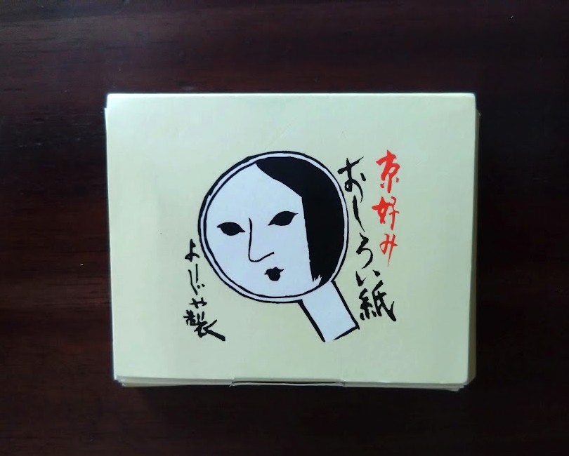 舞台化粧を扱っていたよーじやの歴史を感じることができるあぶらとり紙でした。