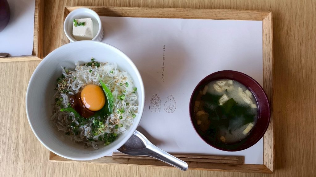 私がいただいたのは、「釜上げしらす丼(醤油麦麹添え)」と「卵かけセット」です。