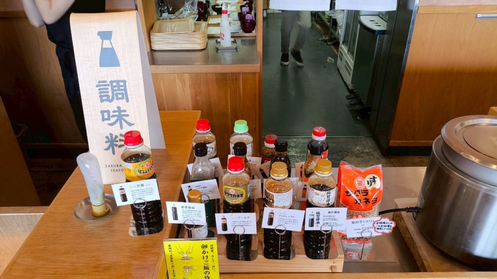 サクラカネヨのたくさんの調味料が並び、試してみることができます。