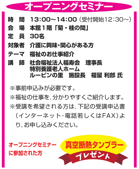 将来福祉や介護の仕事に就きたい、仕事内容を知りたいと思っていらっしゃる学生さん、転職を考えていらっしゃる社会人の方、ぜひぜひご参加ください。