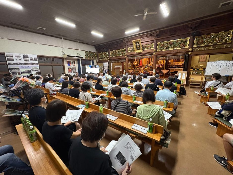 とはいえ、浸水被害にあわれた住民の多くは、家具や床・壁の掃除方法など復旧に必要な知識を持ち合わせていません。妙行寺では相談窓口を設けていたため、連日多くの相談が寄せられました。そこで、和田ボランティア本部(仮)が主催し、「生活再建に必要な情報を伝える住民説明会」を妙行寺の本堂で開催することに。