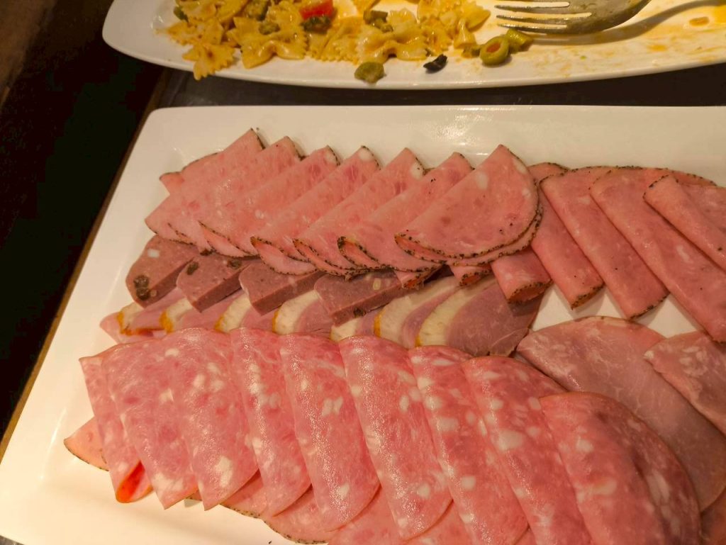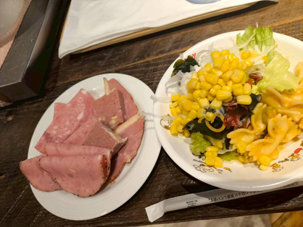 海藻やコーンがあるのが嬉しいですね!ハムもいろいろありました。ドレッシングは3種類用意されています。