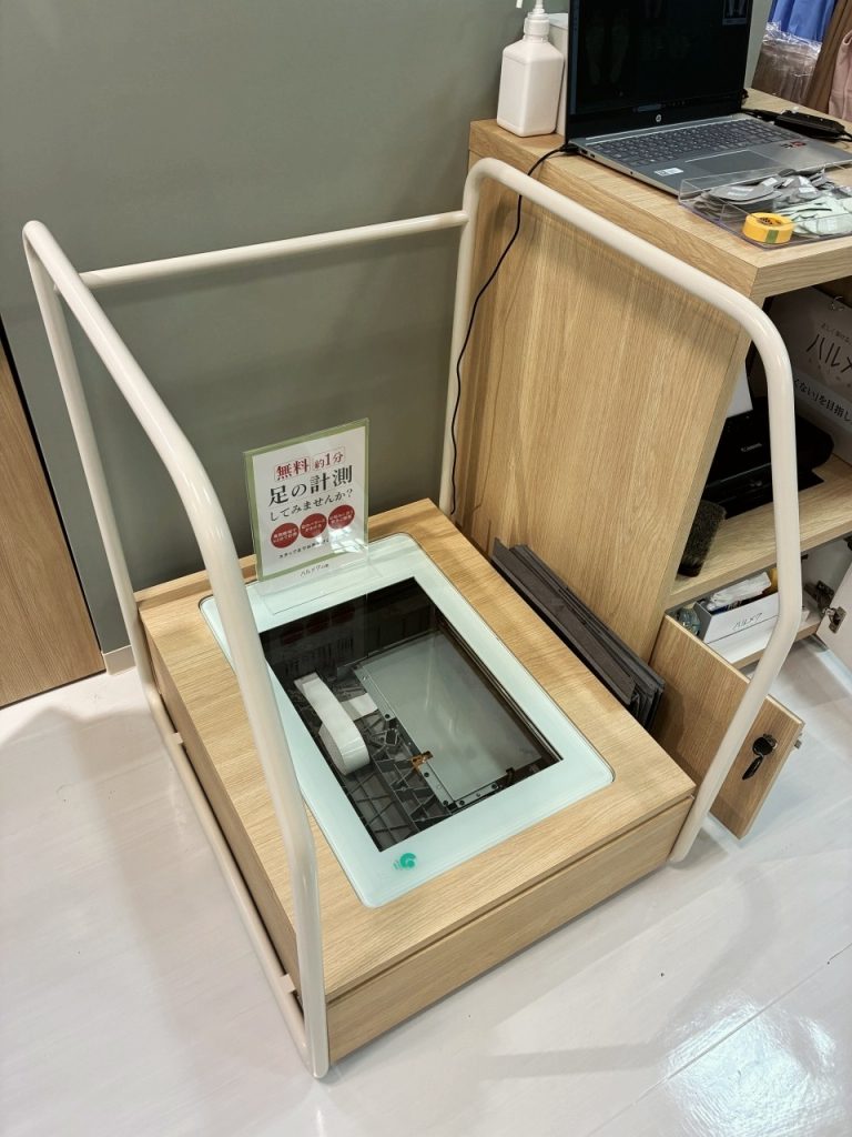 無料の足についての諸々を計測できるコーナーがあり、自分に本当に合う歩きやすい靴を診断して選ぶことができます。