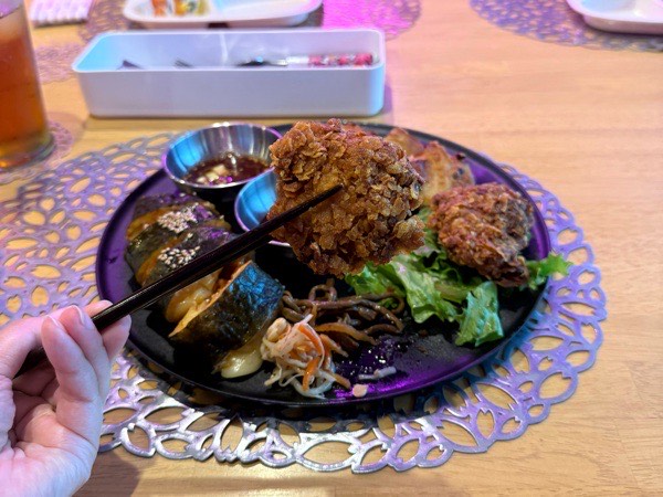 チキンも衣がカリッカリ!!!副菜のナムル的なものも美味しくて、とにかくこのプレート最高でした。