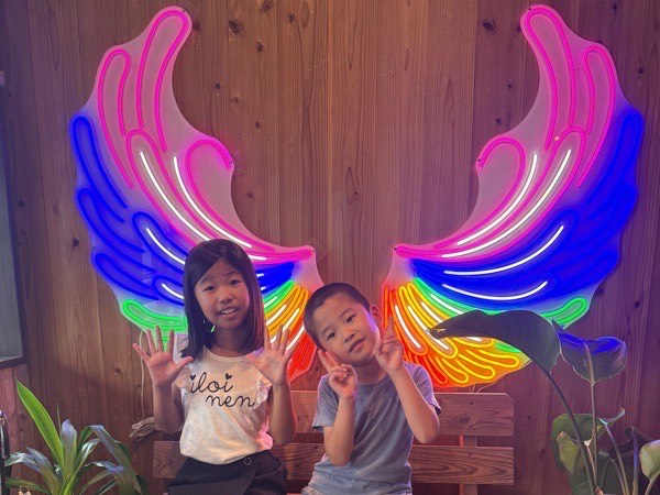 店内入り口にはこんなフォトスポットもあり、思わず子供たちとはしゃいで写真を撮りました。