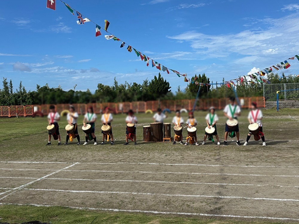 竹島大運動会のスタートは、子どもたちのジャンベ演奏から。