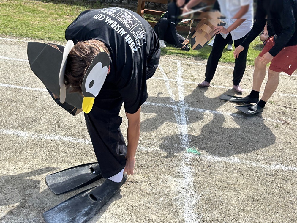 毎年恒例なのが、地域vs教職員のペンギン&デカパンレース。