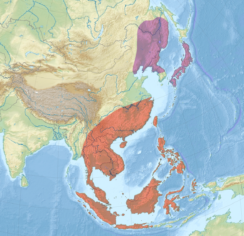 下の画像の紫色が繁殖地、オレンジ色が越冬地です。