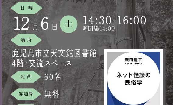 12月6日(土)「『ネット怪談』は何処から来た? 廣田龍平先生講演会」を開催します。