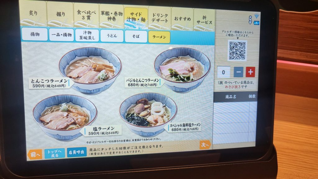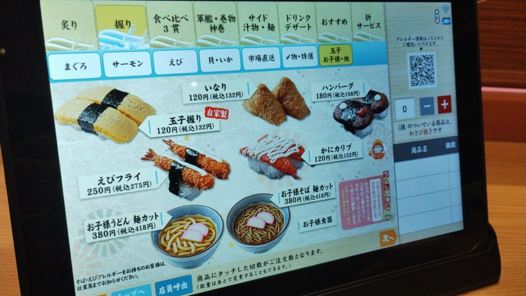 今回はせっかくなのでとお寿司を中心に食べましたが、サイドメニューなども充実しています。