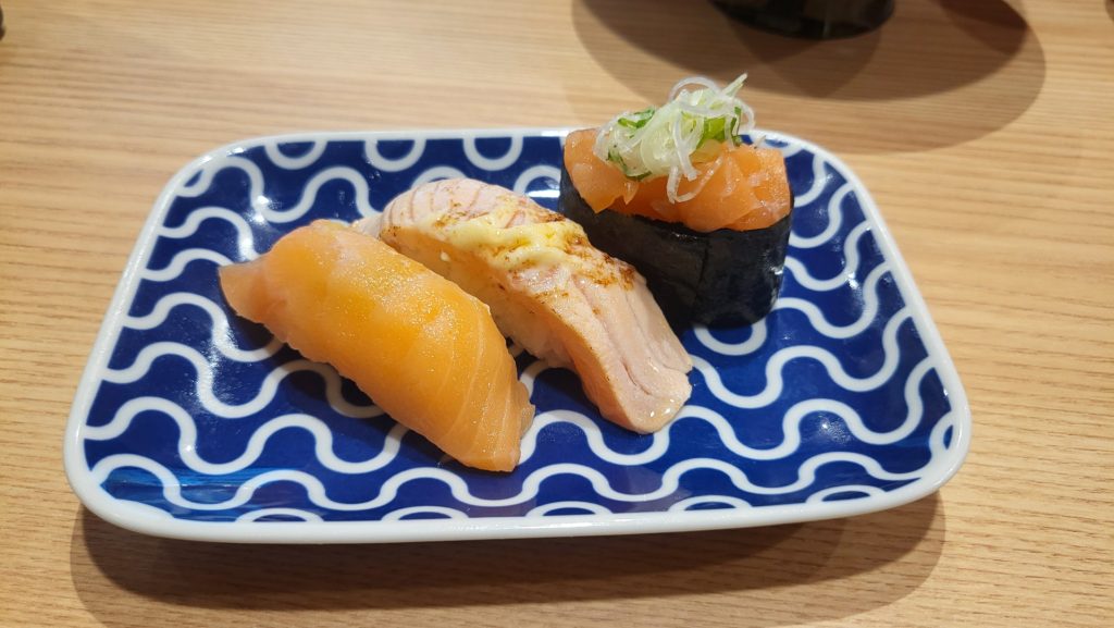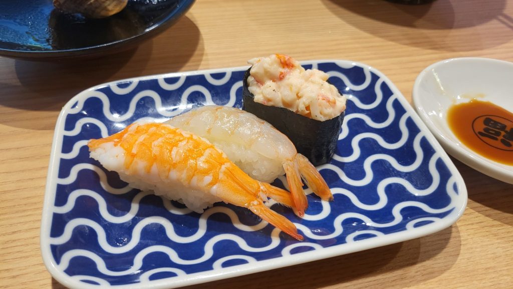 おいしかったので、他に、えび三貫とサーモン三貫も注文しました。
