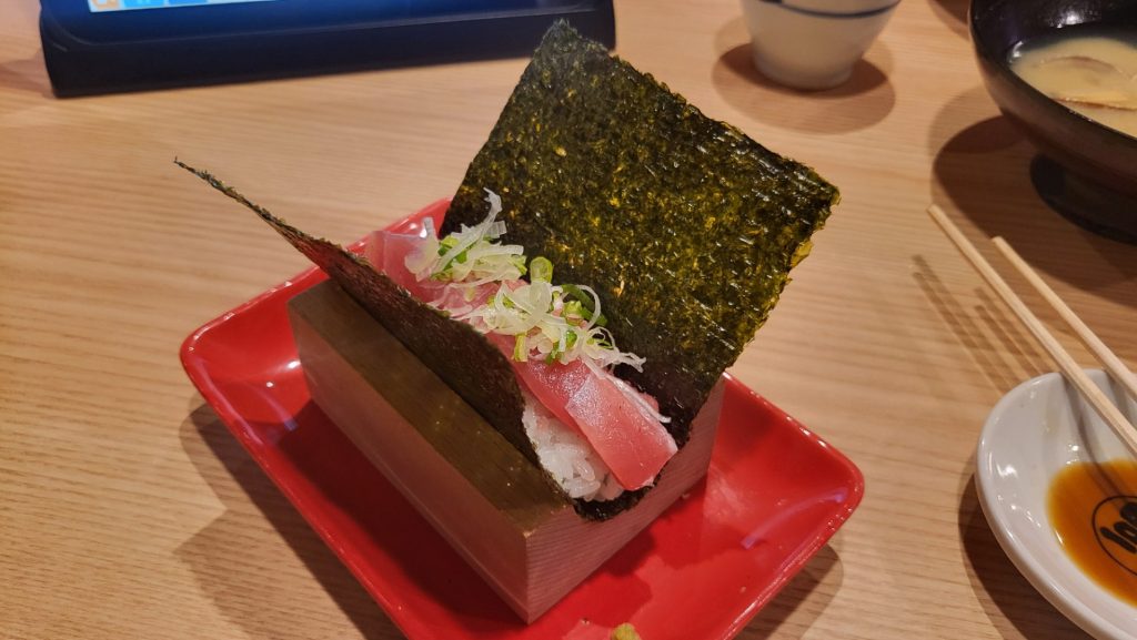 ネタが少し小さめに感じますが、一口で頬張れてちょうど良いサイズです。