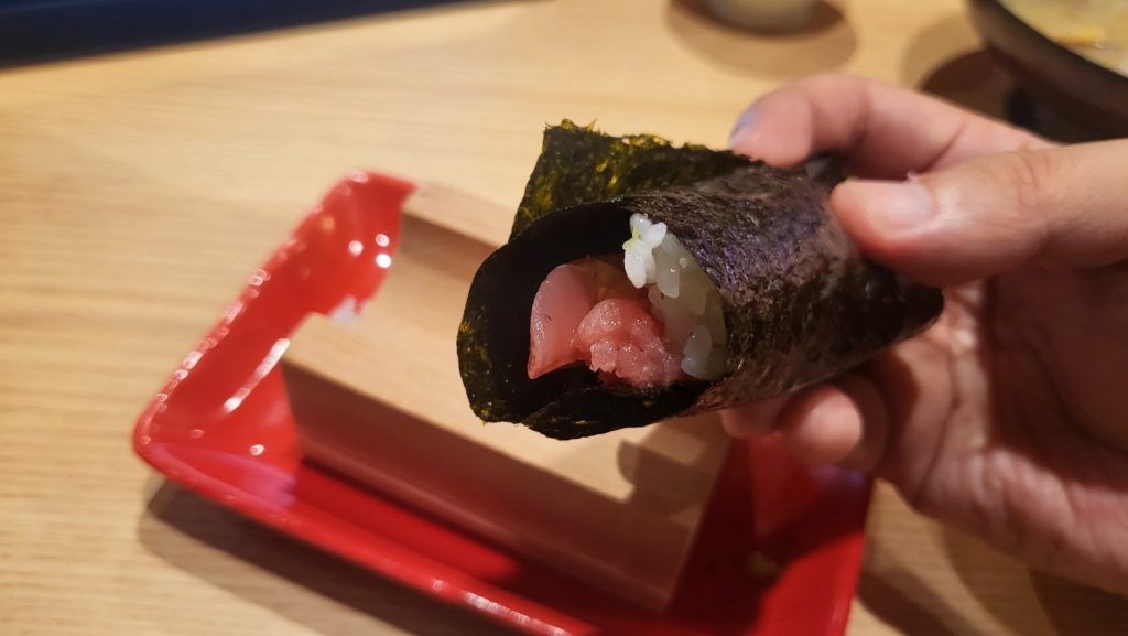 とろける鉄火の名前の通り、マグロが柔らかで、口に入れたらとろける感じでした。