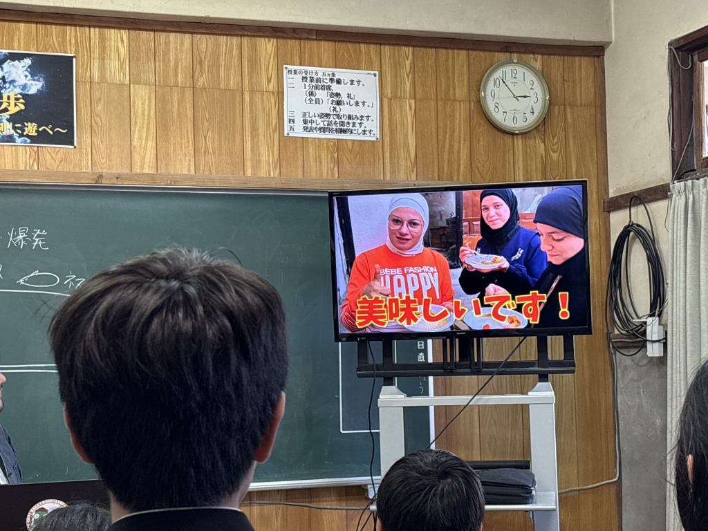 戦争が終わったばかりの国の様子や生活、食事などを紹介する授業では、みんなでディスカッションする時間も。