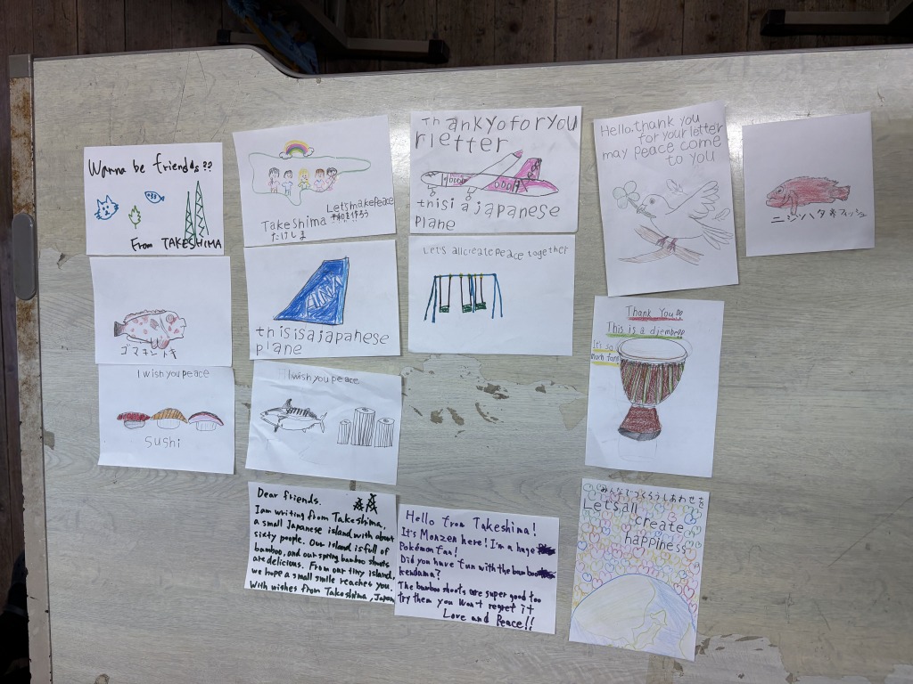 竹島の食材やおもちゃを受け取った現地の子どもたちからは、お礼のお手紙が。