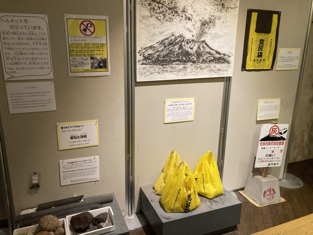 この施設では桜島の歴史の様々な展示を通して楽しく学ぶことが出来ます。館内に入ってすぐのところにはミュージアムショップがあり、桜島ならではのお土産や椿、桜島小みかんが使用された美容グッズなど、わくわくするような商品が多く販売されていました!