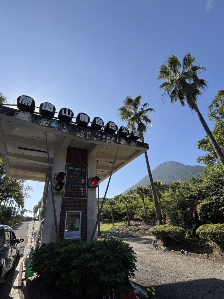 高さ924mの開聞岳の東麓に位置する開聞山麓自然公園は、亜熱帯植物が生い茂る自然豊かな公園です。園内には、東シナ海に向かって長崎鼻や佐多岬、さらに池田湖や桜島まで一望できる展望所があり、どこから見ても景色がとても美しい場所でした。