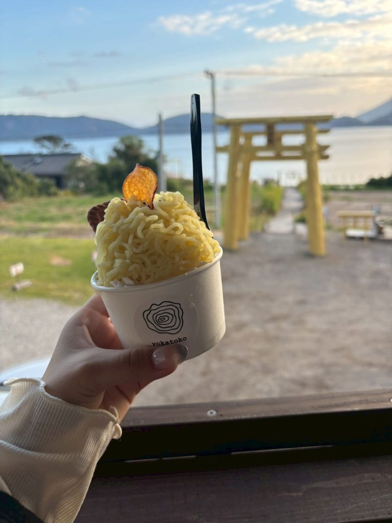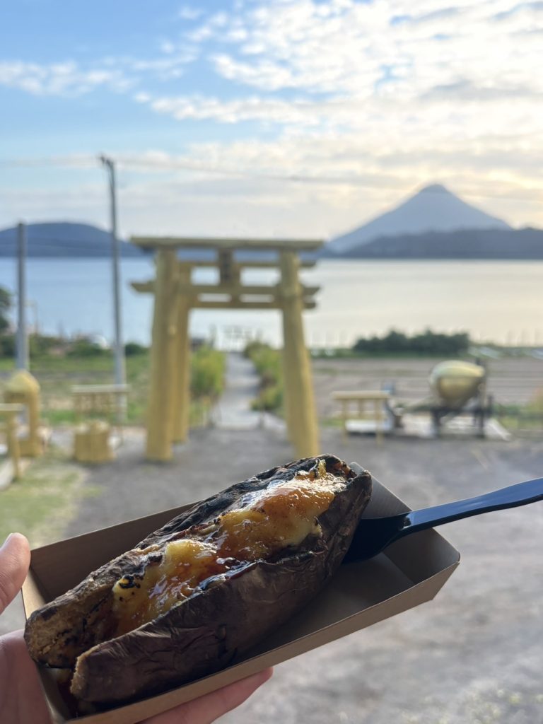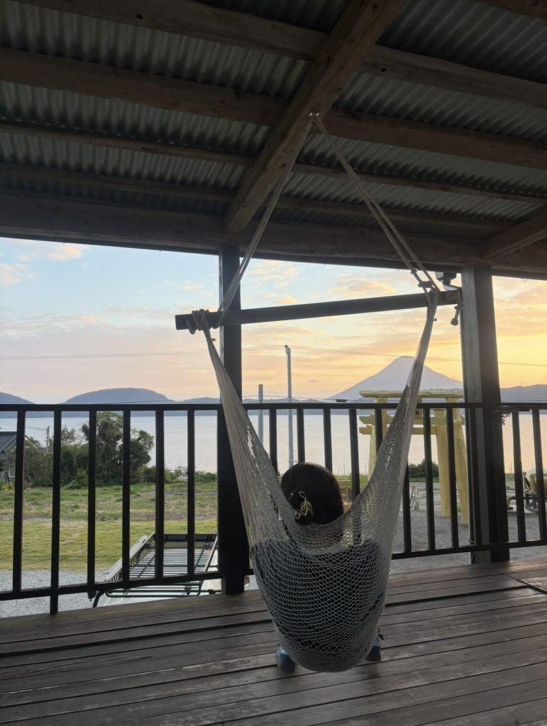 テラス席にはハンモックもあり、ハンモックに揺られながら池田湖や開聞岳、目の前に広がる黄金の鳥居を眺めつつ、スイーツやドリンクをゆったり楽しむこともできます。ハンモックでのんびり過ごす時間も、カフェの贅沢な楽しみのひとつです。