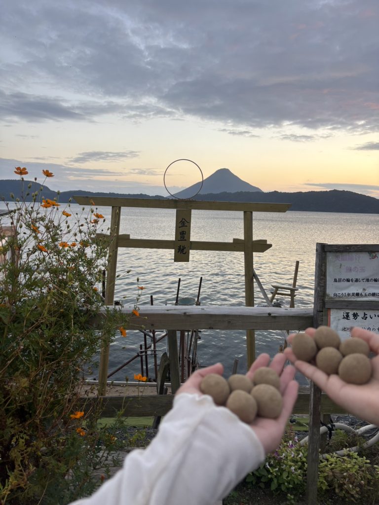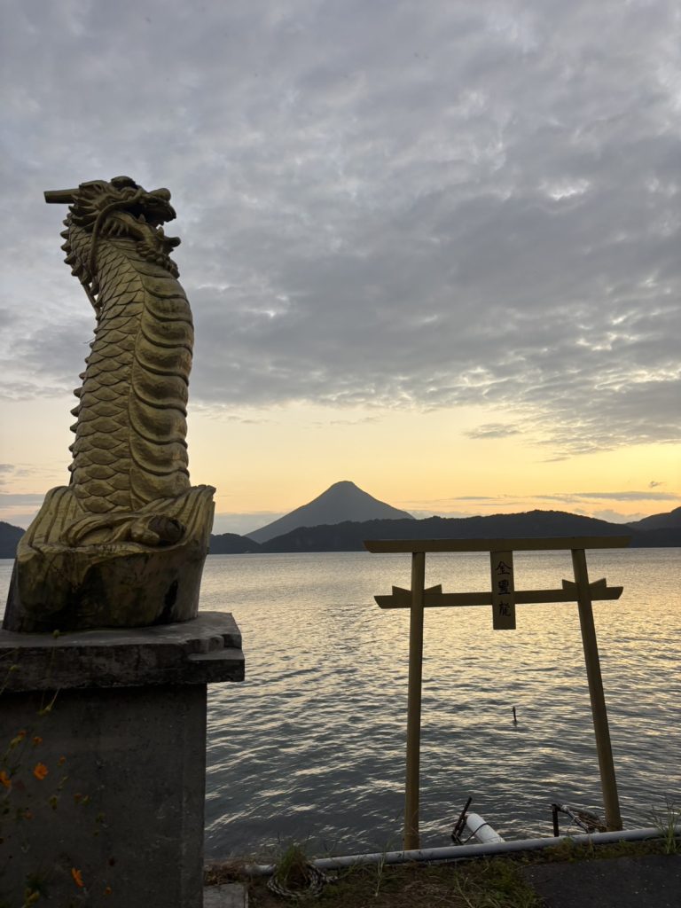 池田湖と開聞岳の眺めが一番良かった場所だから。黄金と鳥居も目の前にあり景色がいいから。