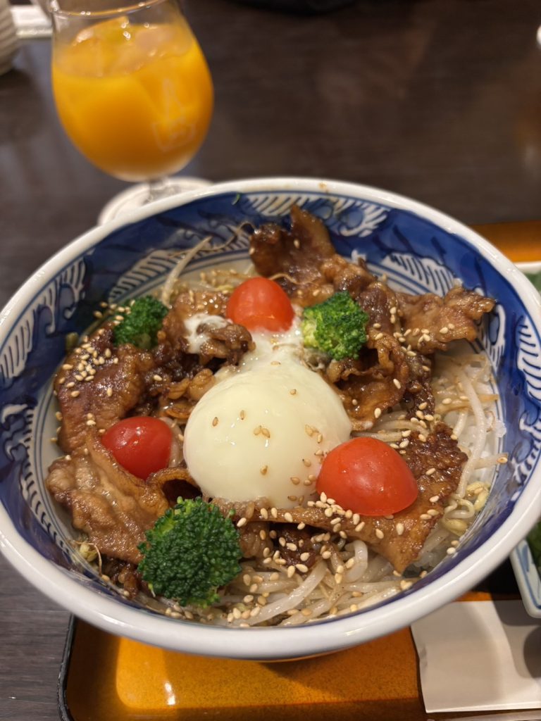 黒豚三枚肉を秘伝のタレで仕上げた「温たまらん丼」は、一口食べるとやみつきになる一杯です。濃厚なタレに温泉卵がトローリと絡み、まろやかさとコクが口いっぱいに広がります。中央の温玉をくずすと、黄身が具材とタレをやさしく包み込み、白ご飯との相性も抜群で、最後の一口まで満足感たっぷりです。
