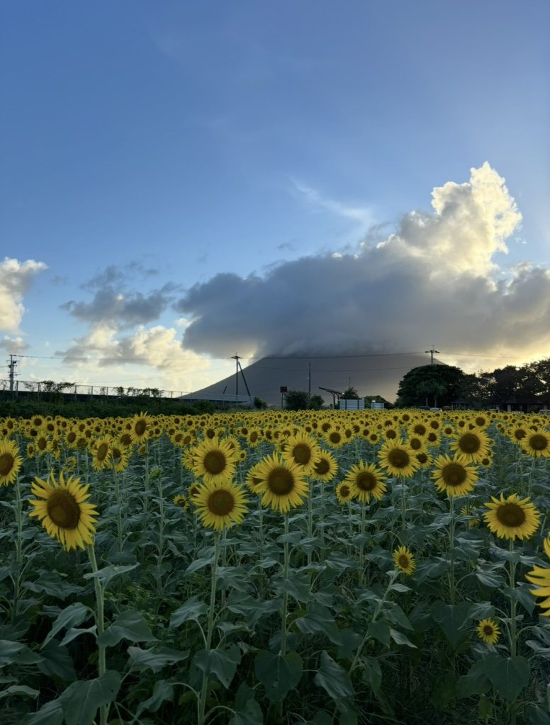 夏には駅前にたくさんのひまわりが広がっています。タイミングが合えば列車やひまわり畑と開聞岳を一緒に撮影できるかも知れません‼︎