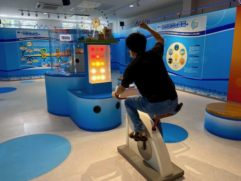 館内には、発電の仕組みが体験できる「発電展示室」、川内川と流域の歴史や役割を学べる「川内川流域展示室」があり、特に自転車をこいで発電を体験できるコーナーは大人気。