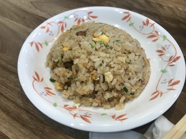 半チャーハンと普通サイズのチャーハンがある。ラーメンの味を邪魔しない優しさ味のチャーハンなので、唐揚げにも合う。