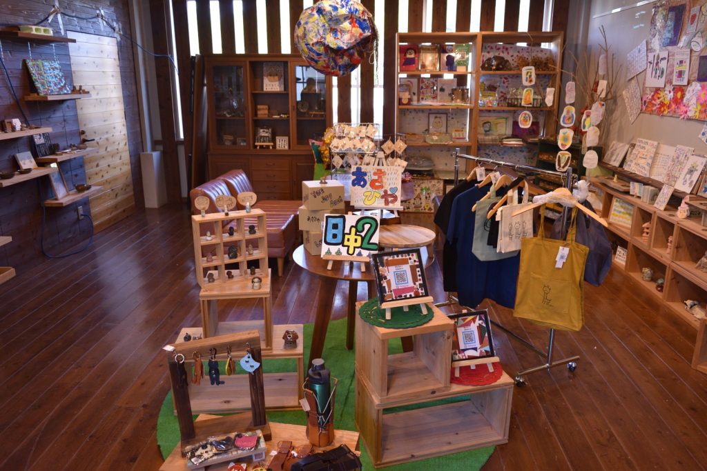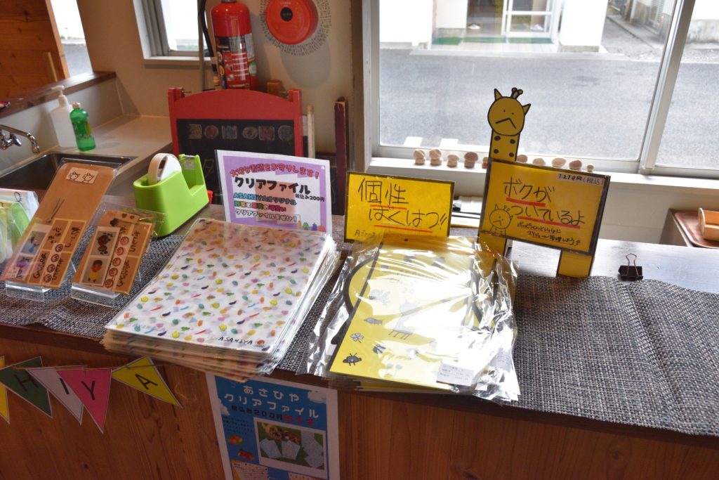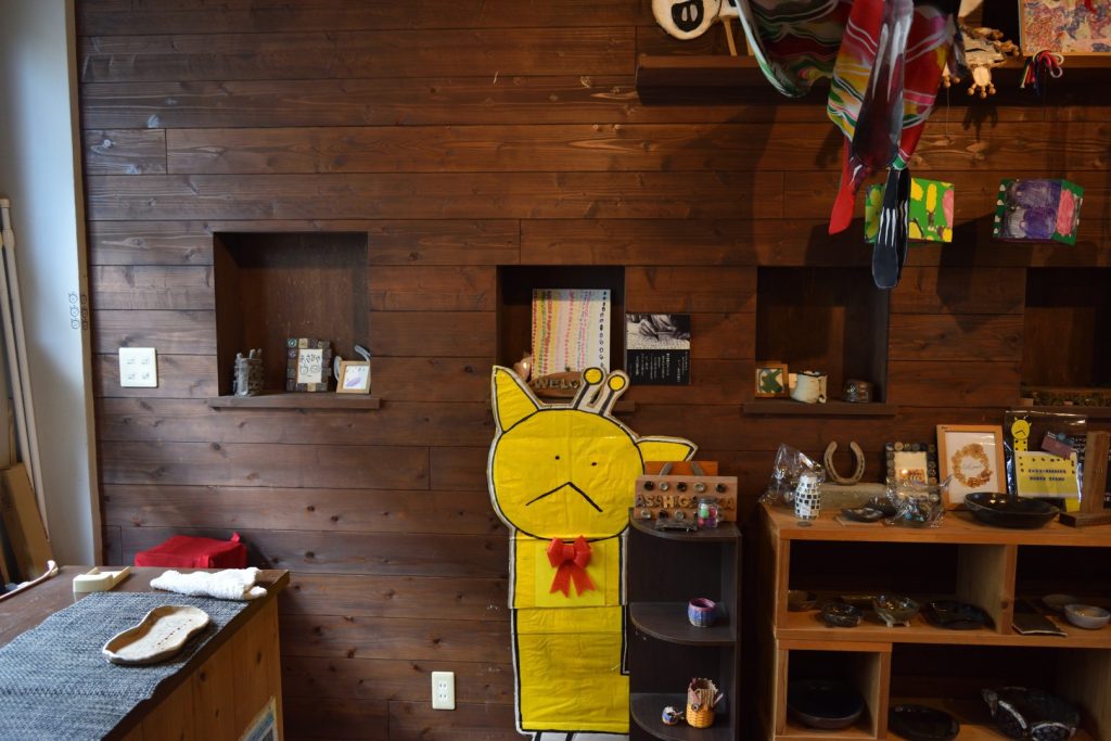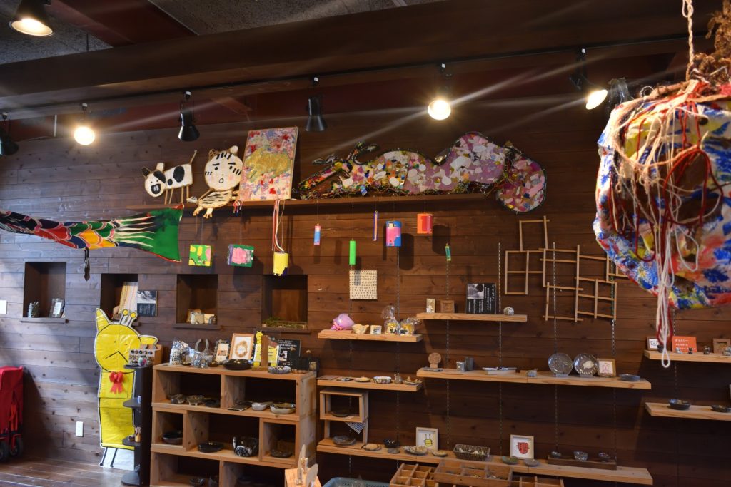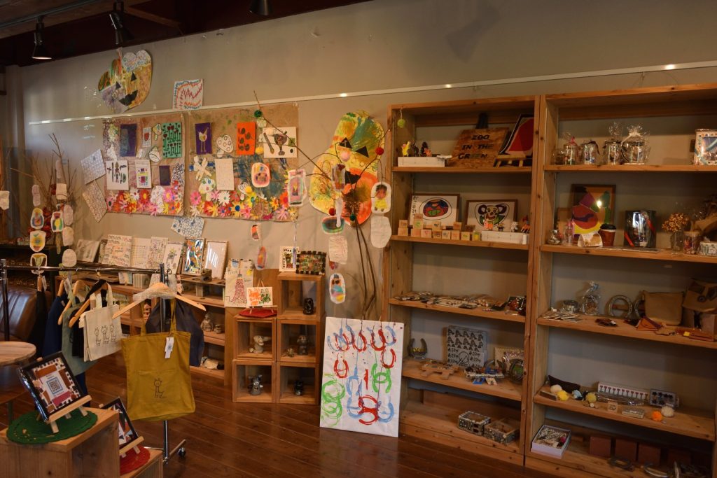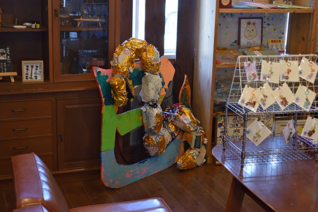 ギャラリーに並んでいる作品は、あさひが丘の生活介護で作られたものです。