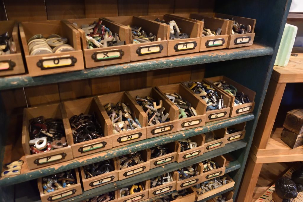 ギャラリーの奥にある棚には、バッグなどが並んでいます。