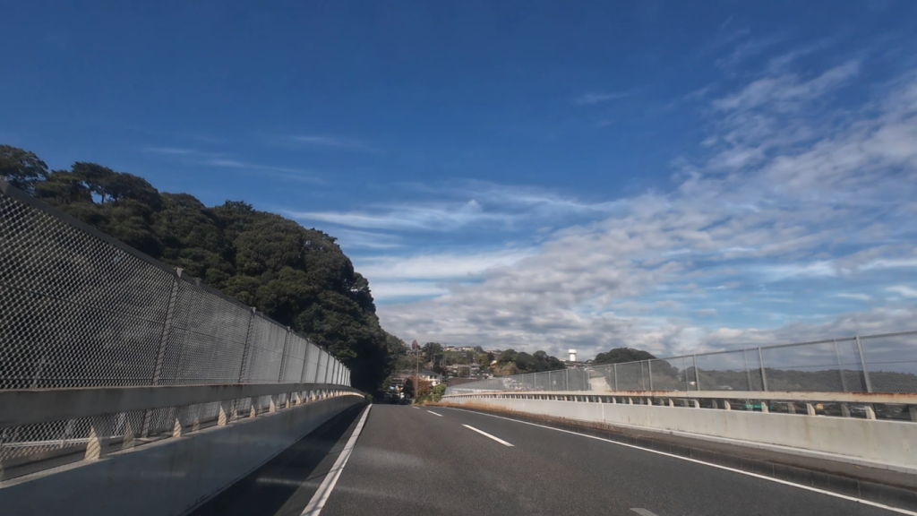 道なりに走り、高速道路をまたぐ陸橋を渡ります。