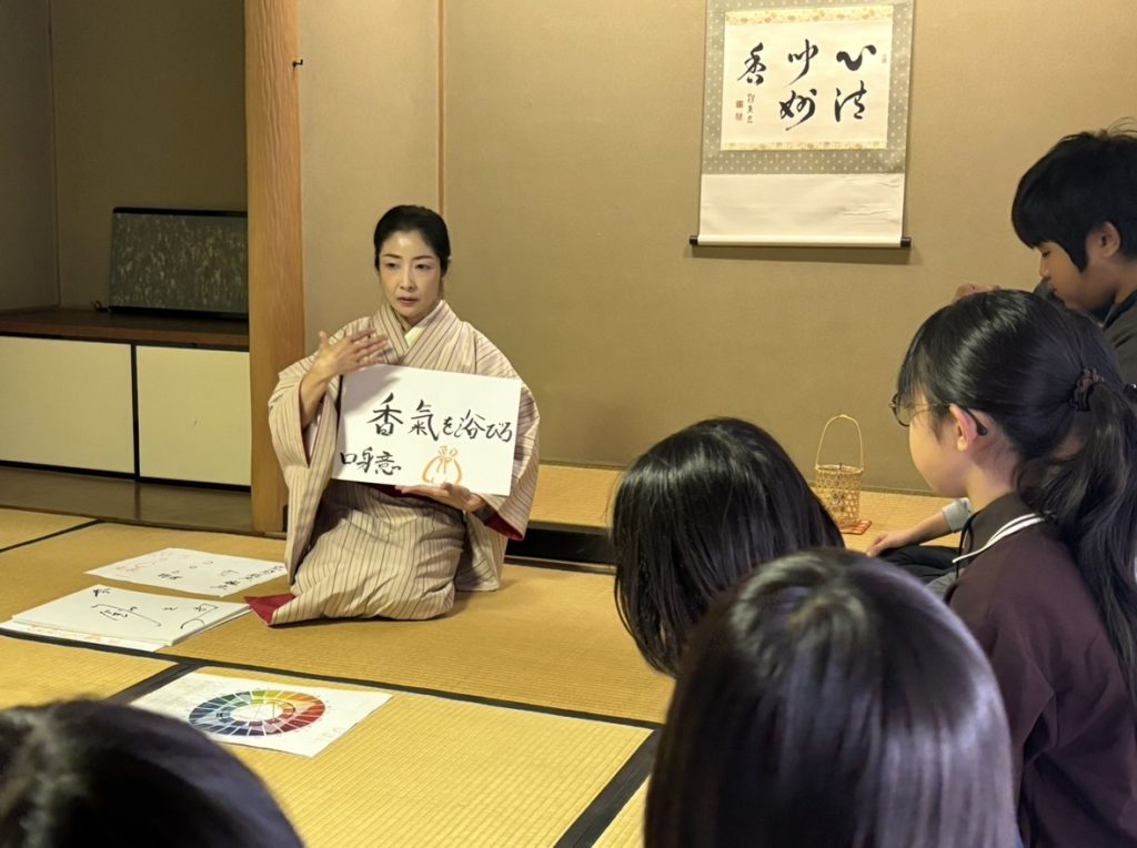 初めてみるお道具や聞香(もんこう)の作法ですが、先生の優しく穏やかな声色のおかげで自然と香りの世界に馴染んでいくのを感じました。私自身もですが、子供たちもとても穏やかな時間を過ごしていてこの瞬間、この場が一体となって香りを楽しんでいるのがとても心地よかった!