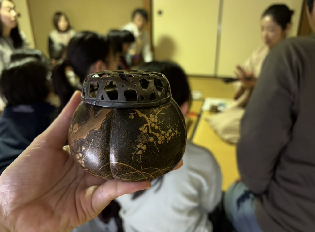 続いて、いよいよ「聞香(もんこう)」の時間です。香道のお道具を真近で見て、触らせてもらいました。