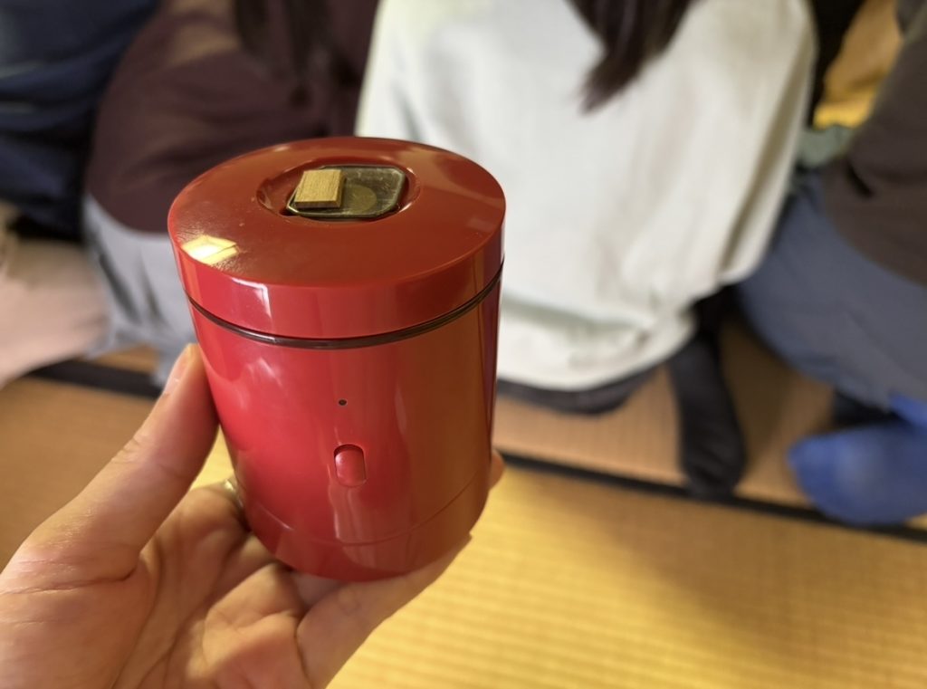 実際の聞香(もんこう)も、この電気香炉を使用し「白檀(びゃくだん)」「沈香(じんこう)」の2種類の香木を聞かせていただきました。